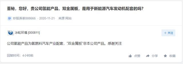 公司氫能產(chǎn)品為氫燃料汽車產(chǎn)業(yè)配套,“雙金屬板”非本公司產(chǎn)品。感謝關(guān)注