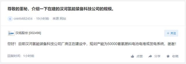 尊敬的董秘,介紹一下在建的漢河氫能裝備科技公司的規(guī)模。