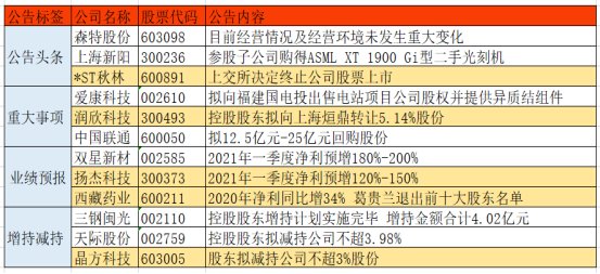 上市公司重要公告發(fā)布 雙星新材2021年一季度凈利預(yù)增180%-200%
