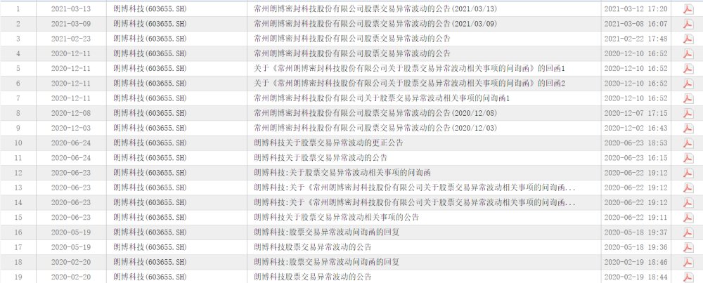 此外,除了幾個(gè)大規(guī)模波動(dòng)以外,朗博科技在2020年全年幾乎都在忙著解釋“股價(jià)波動(dòng)”。