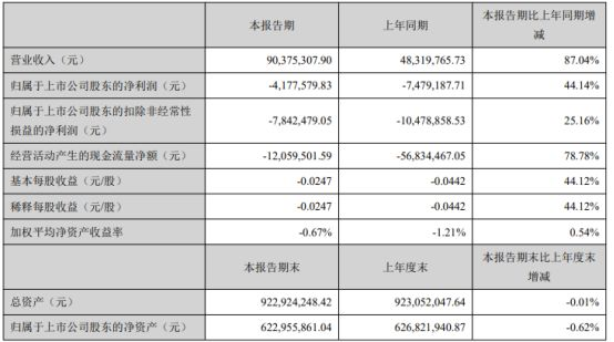 歸屬于上市公司股東的凈利潤(rùn)-4,177,579.83元,較上年同期虧損減少,報(bào)告期內(nèi),營業(yè)收入增長(zhǎng),歸屬于母公司所有者的凈利潤(rùn)增加。