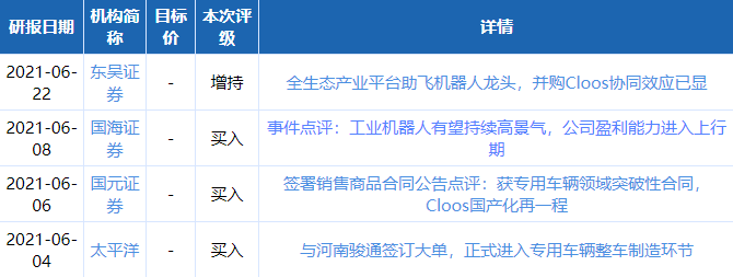 埃斯頓近一個(gè)月獲得4份券商研報(bào)關(guān)注。研報(bào)詳細(xì)數(shù)據(jù)如下表所示: