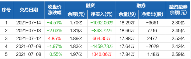【固德威(688390)、股吧】融資融券信息顯示,2021年7月14日融資凈償還1092.06萬元;融資余額1.7億元,較前一日下降6.04%。