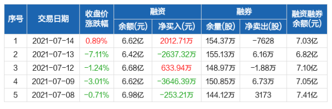 摘要: 2021年7月14日思源電氣融資凈買(mǎi)入2012.71萬(wàn)元,融資余額6.62億元