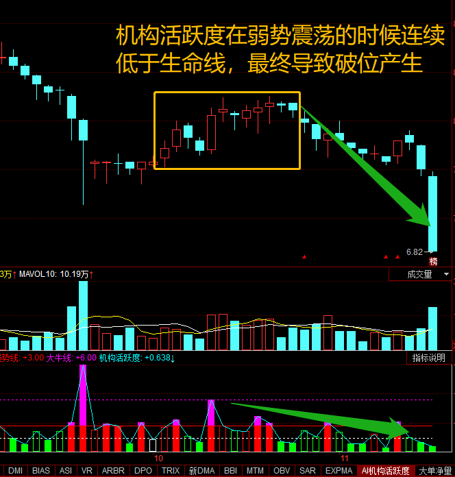 根據(jù)AI機構(gòu)探測器統(tǒng)計,除去11月12日跌停當(dāng)天外,最近7個交易日該股有4次機構(gòu)活躍度達不到生命線,因而資金面無法得到“補血”也就推動了其向下破位的進程,而類似這樣的品種是需要投資者朋友在日常盯市中規(guī)避的。
