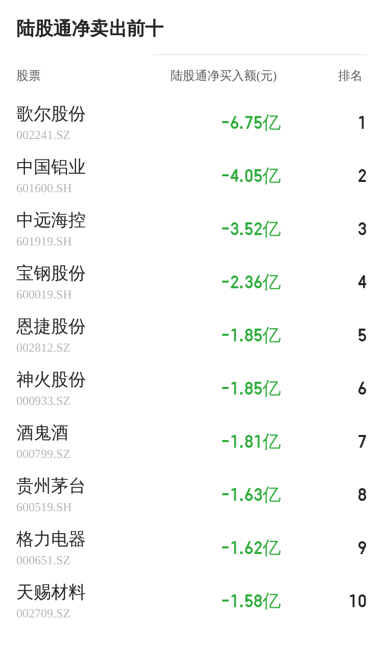 中航機(jī)電連續(xù)5日遭北上資金凈賣出,累計(jì)賣出3.44億元