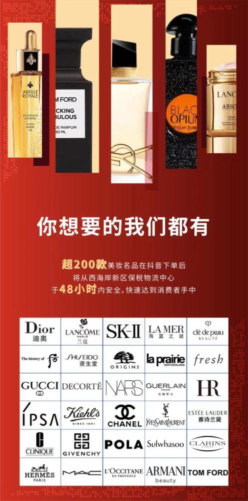 雅詩(shī)蘭黛、海藍(lán)之謎、資生堂、雪花秀……超過(guò)200款美妝名品在抖音下單后,將從西海岸新區(qū)保稅物流中心,于48小時(shí)內(nèi)安全、快速送到消費(fèi)者手中。