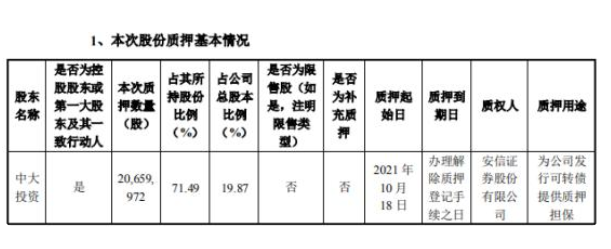 本次質押股份2066萬股,占其所持公司股份的71.49%,占公司總股本比例的19.87%。質押期限為2021年10月18日至辦理解除質押登記手續(xù)之日。