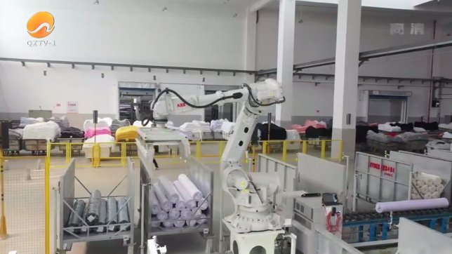 分揀,是紡織服裝企業(yè)最耗費(fèi)人工的工序之一,但在鳳竹紡織安東新廠這間車間,兩臺(tái)機(jī)械臂像兩位“大力士”一次性就能抓取30-40公斤的整捆布料,并精準(zhǔn)投放到不同的料框,隨后進(jìn)場的智能搬運(yùn)機(jī)器人將料框送到自動(dòng)化倉儲(chǔ)系統(tǒng)中。