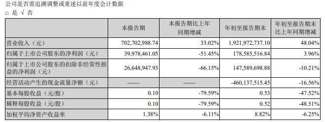 10月22日,凱倫股份發(fā)布了2021年第三季度業(yè)績(jī)報(bào)告。報(bào)告顯示,2021第三季度凱倫股份營(yíng)收7.03億元,同增33.02%;凈利潤(rùn)為3997.8萬(wàn)元,同比下滑51.45%;扣非凈利潤(rùn)為2664.9萬(wàn)元,同比下滑66.15%;每股收益為0.10元/股。