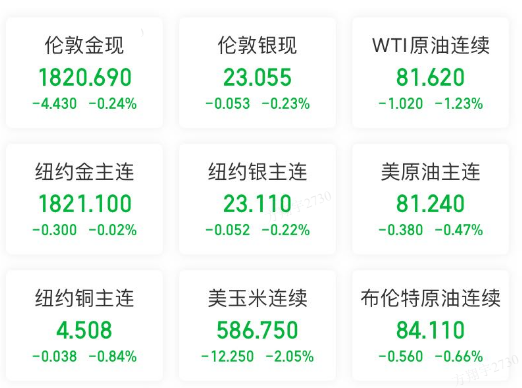 WTI原油主力合約收于每桶81.70美元,跌1.14%;布倫特原油主力合約收于每桶84.11美元,跌0.66%;隔夜上期所原油主力合約收于每桶524.30元,漲0.10%。