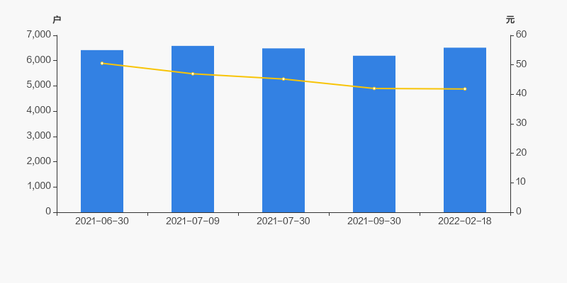截至2022年2月18日,公司最新總股本為1億股,其中流通股本為9919.56萬(wàn)股。戶均持有流通股數(shù)量由上期的1.6萬(wàn)股下降至1.52萬(wàn)股,戶均流通市值63.69萬(wàn)元。