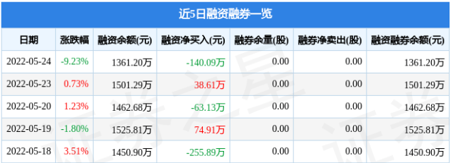 浙江恒威融資融券信息顯示,融資方面,當(dāng)日融資買(mǎi)入116.13萬(wàn)元,融資償還256.22萬(wàn)元,融資凈償還140.09萬(wàn)元。融券方面,融券賣(mài)出0.0萬(wàn)股,融券償還0.0萬(wàn)股,融券余量0.0萬(wàn)股,融券余額0.0萬(wàn)元。融資融券余額1361.2萬(wàn)元。近5日融資融券數(shù)據(jù)一覽見(jiàn)下表: