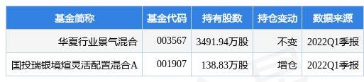 根據(jù) 2022Q1 季報(bào)基金重倉(cāng)股數(shù)據(jù),重倉(cāng)該股的基金共 2 家,其中持有數(shù)量最多的基金為華夏行業(yè)景氣混合。華夏行業(yè)景氣混合目前規(guī)模為 112.21 億元,最新凈值 3.2371(6 月 2 日),較上一交易日上漲 1.42%,近一年上漲 26.23%。該基金現(xiàn)任基金經(jīng)理為鐘帥。