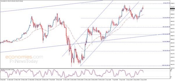 周五(4月24日)亞市早盤,現(xiàn)貨黃金位于1728美元/盎司附近;周四金價(jià)大漲超過16美元。知名財(cái)經(jīng)網(wǎng)站Economies.com最新撰文,對(duì)金價(jià)后市走勢(shì)進(jìn)行分析。