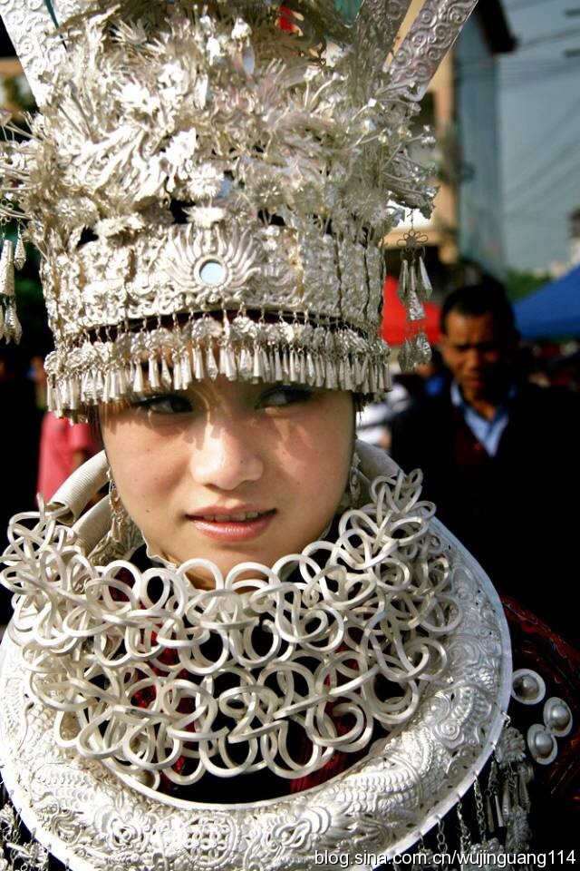 這組照片反映了苗族人身體所有部位的銀飾,十分鮮艷.