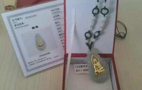 金鑲玉,確實(shí)是真金白銀,要不然也出不了證書。這種抽獎的玉石,從科學(xué)的角度鑒定是沒問題的。但是其市場價值幾乎等于零。金確實(shí)是真的,不過只是在表面鍍一層非常薄的金。