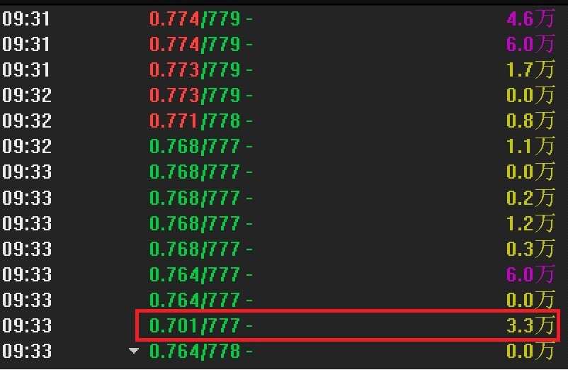 因流動(dòng)性不足,分時(shí)成交明細(xì)顯示,開盤不久一筆僅3萬多元的賣單,就將價(jià)格壓低至0.701元,不過很快價(jià)格就出現(xiàn)了回升。