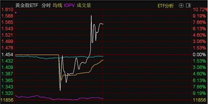 2只ETF早盤大幅波動(dòng),黃金股ETF溢價(jià)近20%