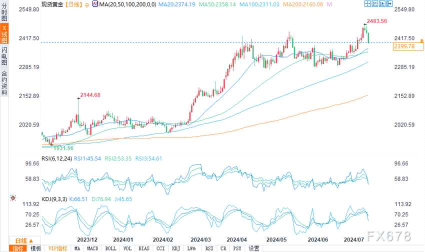 (現(xiàn)貨黃金日圖來源:易匯通)