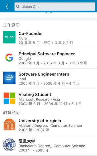 綜合媒體公開報道,聯(lián)合創(chuàng)始人朱家俊本科畢業(yè)于復旦大學,隨后前往美國弗吉尼亞大學繼續(xù)深造。在一次國際展會上,朱家俊邂逅了當時谷歌街景團隊的核心成員Luc。出于對人工智能的共同興趣,兩人相一拍即合。隨后,朱家俊來到Google實習并在街景項目中嶄露頭角,他提出“click-to-go”的新想法,并獲得專利。最后,朱家俊終止在弗吉尼亞大學的Phd課程,加入谷歌并繼續(xù)工作了8年半。在谷歌時,朱家俊是谷歌街景部門的首席工程師,之后,谷歌自動駕駛項目從街景部門獨立出來,而朱家俊也成了谷歌自動駕駛項目的創(chuàng)始元老之一。負責帶領(lǐng)環(huán)境感知技術(shù)和仿真模擬的研發(fā)。