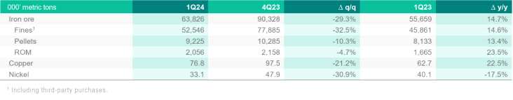 淡水河谷2024年第一季度產(chǎn)銷量報(bào)告