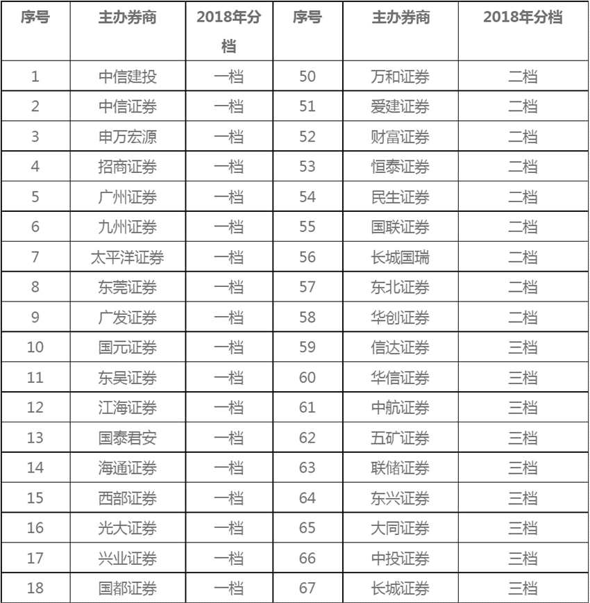 2018年度主辦券商執(zhí)業(yè)質(zhì)量評價(jià)結(jié)果