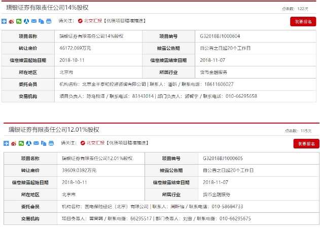 10月10日,北京產(chǎn)權(quán)交易所披露,中糧集團和國電資本控股合計轉(zhuǎn)讓瑞銀證券26.01%的股權(quán),轉(zhuǎn)讓底價合計為8.58億元,受讓方需“打包”購買。