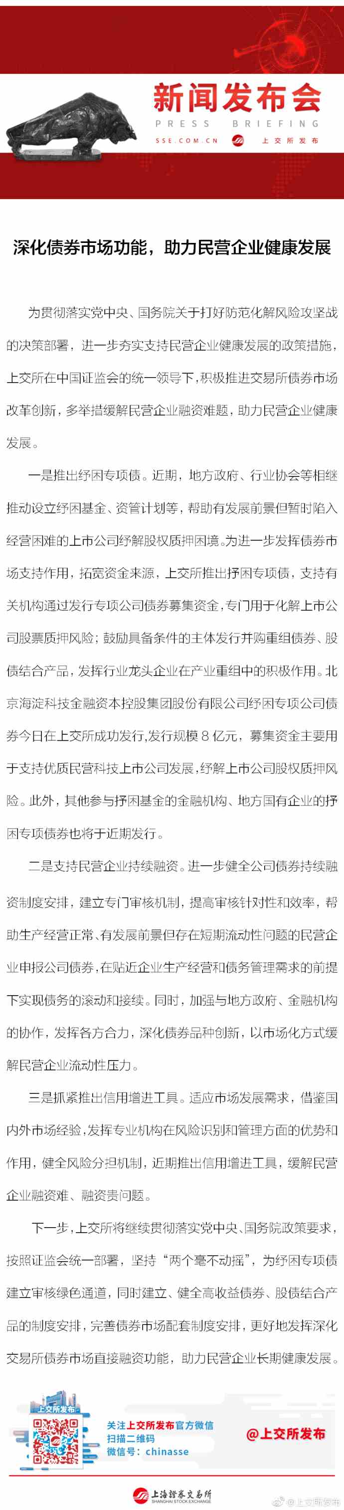 上交所:深化債券市場功能 助力民營企業(yè)健康發(fā)展。