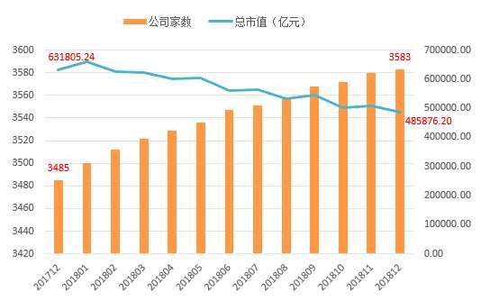 【同花順(300033)、股吧】(300033)iFinD數(shù)據(jù)顯示,截至12月,A股上市公司總數(shù)達3583家,滬深兩市總市值為48.59萬億元,2017年底A股上市公司總數(shù)為3485家,總市值為63.18萬億元。今年A股上市公司數(shù)量增加98家,市值減少14.59萬億元。