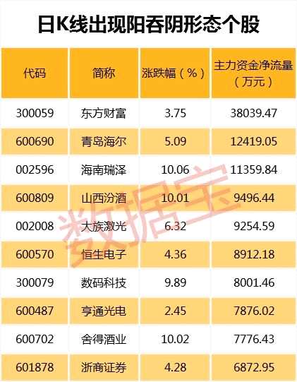 最新數(shù)據(jù)顯示,兩市共有161只個股日K線出現(xiàn)陽吞陰形態(tài),當(dāng)天海南瑞澤、越秀金控、舍得酒業(yè)等股均以漲停收盤。