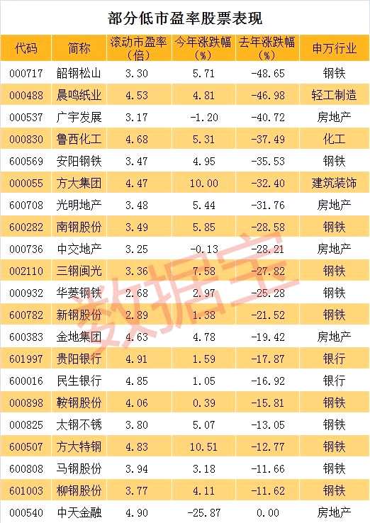 市盈率不到5倍的股票 去年跌超20%今年股價也滯漲