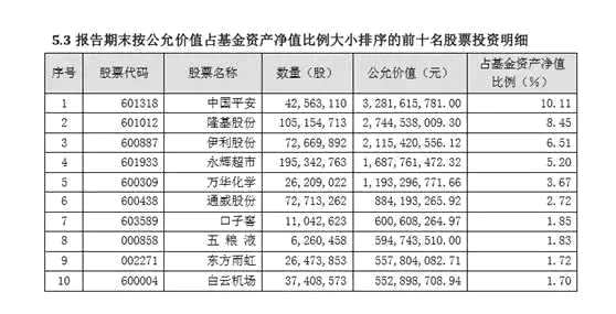 數(shù)據(jù)顯示,興全合宜一季度末前十大重倉股分別為,中國平安、隆基股份、伊利股份、永輝超市、萬華化學(xué)、通威股份、 口子窖 、五糧液、東方雨虹 、【白云機(jī)場(600004)、股吧】,這些個(gè)股中一季度萬華化學(xué)、通威股份、隆基股份一季度漲幅均超過60%,而五糧液、口子窖、東方雨虹、中國平安的漲幅也超過50%,為基金收益貢獻(xiàn)較大。