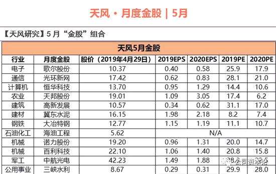 2019年5月金股推薦: