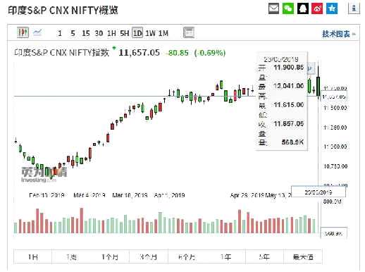 印度NSE Nifty指數(shù)日內(nèi)漲幅一度超過(guò)1%,首次站上了12000點(diǎn)的高位。