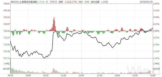上海國資改革將加速推進(jìn),5月30日上午在股指大幅下跌中,Wind上海國資改革概念板塊遭到市場(chǎng)資金的搶籌。10點(diǎn)半以后大量資金的涌入,使得該板塊一度從下跌1.47%直線拉紅。隨后雖有震蕩,但截止到中午收盤僅下跌0.11%。午后震蕩回落后再啟動(dòng)拉升,最終以上漲0.17%收盤,較股指要強(qiáng)的多。