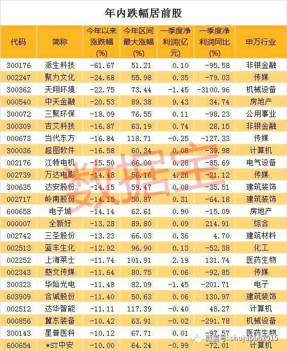 聚力文化在3月12日盤中創(chuàng)年內(nèi)高點(diǎn),自4月25日開始股價(jià)加速下跌,6月11日盤中創(chuàng)下年內(nèi)新低,最新年內(nèi)跌幅為24.68%。累計(jì)跌幅較大的還有天翔環(huán)境、中天金融、三聚環(huán)保、吉艾科技、當(dāng)代東方等。當(dāng)代東方、上海萊士、達(dá)華智能3股年內(nèi)最大漲幅一度翻倍,而最新年內(nèi)累計(jì)跌幅均超10%。