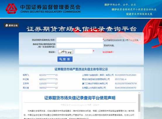 證監(jiān)會表示,專項公示依托證券期貨市場失信信息查詢平臺進行。首批公示的嚴(yán)重失信主體包括: