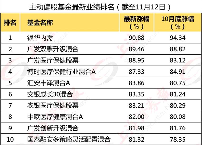 主動(dòng)偏股基金最新業(yè)績(jī)排名(截至11月12日)
