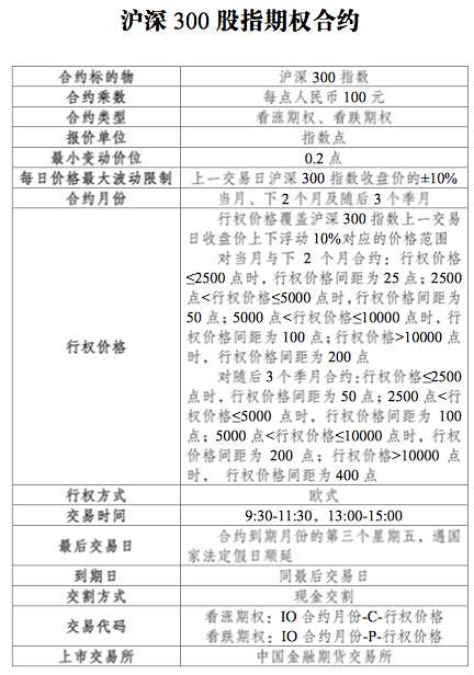 12月14日,中國金融期貨交易所(下稱“中金所”)發(fā)布滬深300股指期權(quán)合約及相關(guān)業(yè)務(wù)規(guī)則,標(biāo)志著滬深300股指期權(quán)合約及規(guī)則準(zhǔn)備工作正式完成。