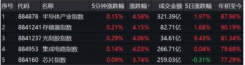 但概念板塊表現(xiàn)活躍,數(shù)據(jù)顯示,半導(dǎo)體產(chǎn)業(yè)指數(shù)、光刻膠指數(shù)等位居概念板塊漲幅前列。