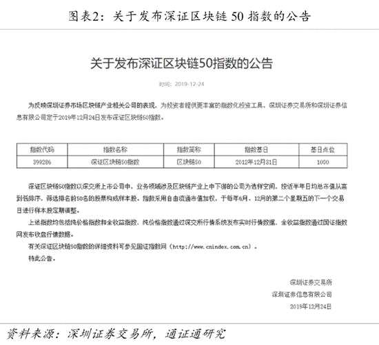 事件:2019 年 12 月 24 日,深圳證券交易所和深圳證券信息有限公司發(fā)布深證區(qū)塊鏈 50 指數(shù),指數(shù)代碼 399286,指數(shù)簡稱“區(qū)塊鏈50”。