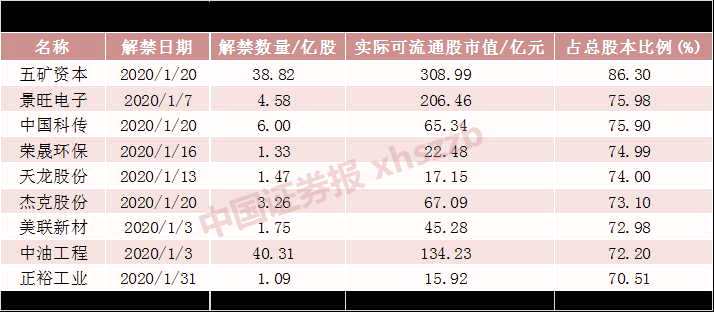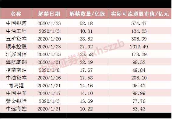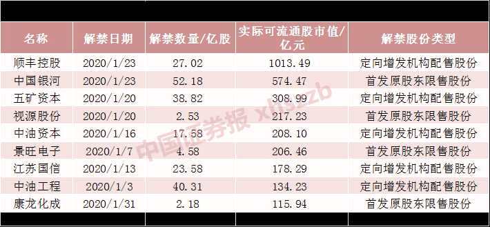 2020年1月,A股將迎來巨量解禁潮!