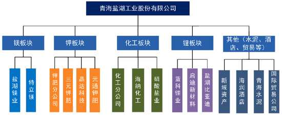 根據(jù)公司2018年年報披露,ST鹽湖是由青海省國資委實際控制的國有企業(yè),主營業(yè)務主要包括氯化鉀的開發(fā)、生產(chǎn)和銷售,鹽湖資源綜合開發(fā)利用等,分為鎂、鉀、化工、鋰等業(yè)務板塊。