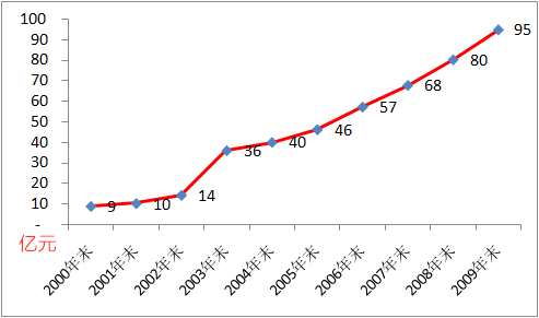 在上上個十年(2000-2009年),ST鹽湖資產(chǎn)也快速增長,但由于基數(shù)小,每年一般也就增長幾億或十幾億,2009年末還未超過100億。