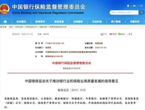 今年年初,銀保監(jiān)會發(fā)布《關于推動銀行業(yè)和保險業(yè)高質量發(fā)展的指導意見》,明確提出: