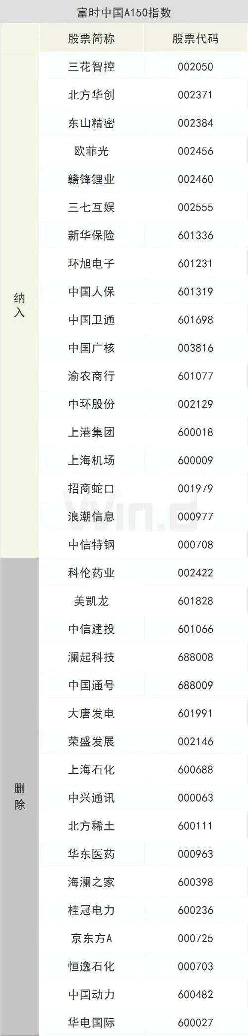 富時(shí)中國(guó)A150指數(shù)將納入三花智控(002050)、北方華創(chuàng)(002371)、東山精密(002384)、歐菲光(002456)、贛鋒鋰業(yè)(002460)等18只個(gè)股,同時(shí)刪除科倫藥業(yè)(002422)、美凱龍(601828)、中信建投、瀾起科技(688008)等17只個(gè)股。