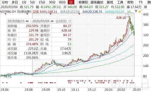 作為半導(dǎo)體及元件概念的龍頭,兆易創(chuàng)新(603986)去年8月份以來(lái)漲幅達(dá)250%,最高漲幅一度超過(guò)300%,雖然近日股價(jià)出現(xiàn)回調(diào),但絕對(duì)漲幅依舊較大,且公司動(dòng)態(tài)市盈率高達(dá)200倍,短期存在估值過(guò)高風(fēng)險(xiǎn)。3月4日,公司股價(jià)盤(pán)中一度跌停,最終收盤(pán)仍大跌8.14%。
