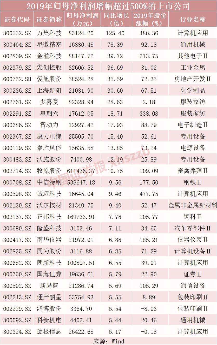 其中,【萬(wàn)集科技(300552)、股吧】(300552)2019年實(shí)現(xiàn)凈利潤(rùn)8.31億元,同比增長(zhǎng)125.4倍,增幅暫列A股第一。值得注意的是,萬(wàn)集科技2019年全年股價(jià)漲幅達(dá)到486.36%。
