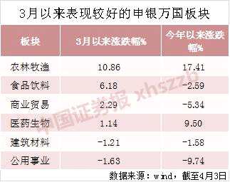 事實(shí)上,3月以來,以消費(fèi)股為代表的內(nèi)需板塊表現(xiàn)十分強(qiáng)勢(shì),逆市斬獲正收益。數(shù)據(jù)顯示,截至4月3日,農(nóng)林牧漁板塊漲幅達(dá)10.86%,食品飲料、商業(yè)貿(mào)易也分別上漲了6.18%、2.29%。